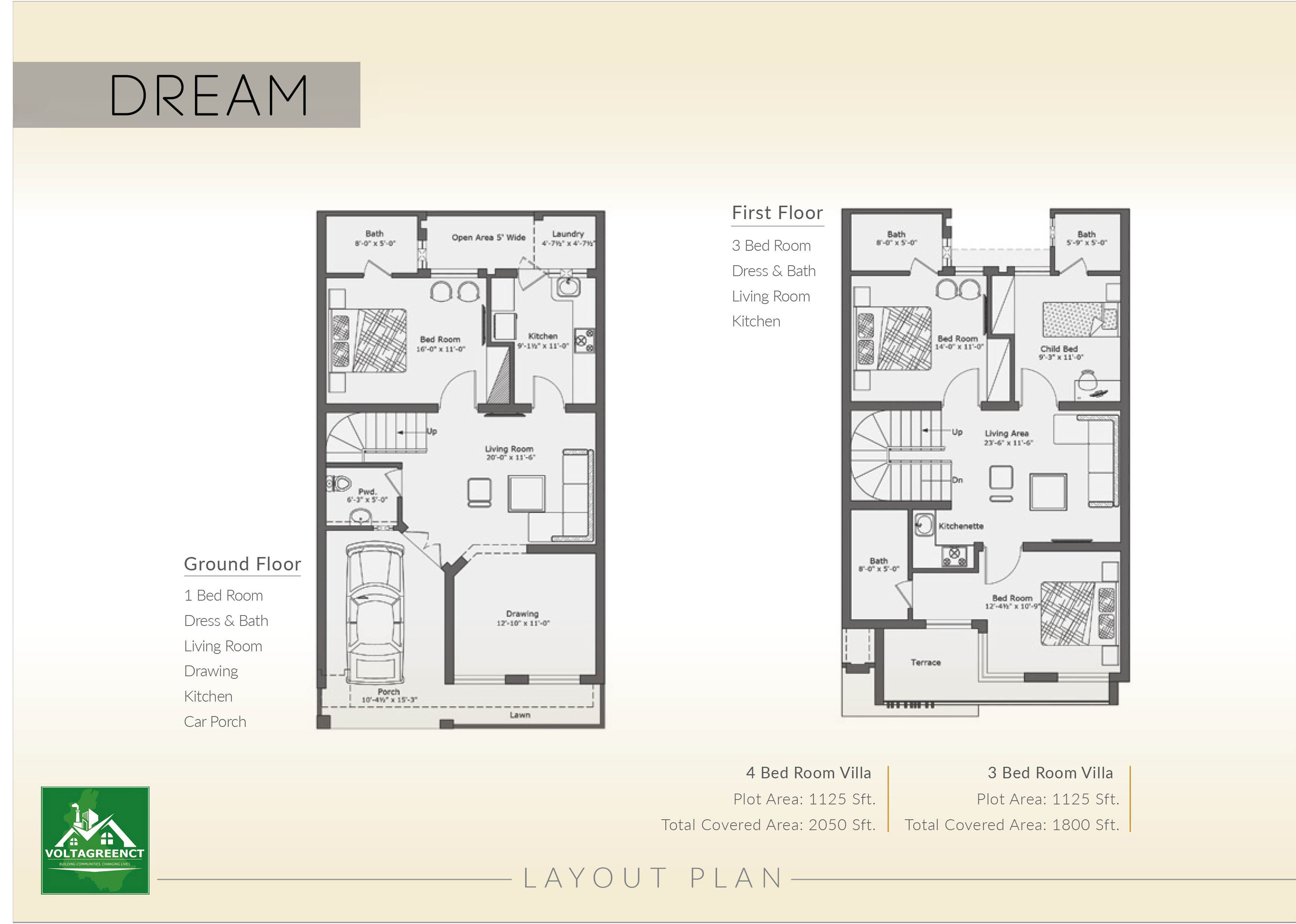 - Total Covered Area: 1800 Sft