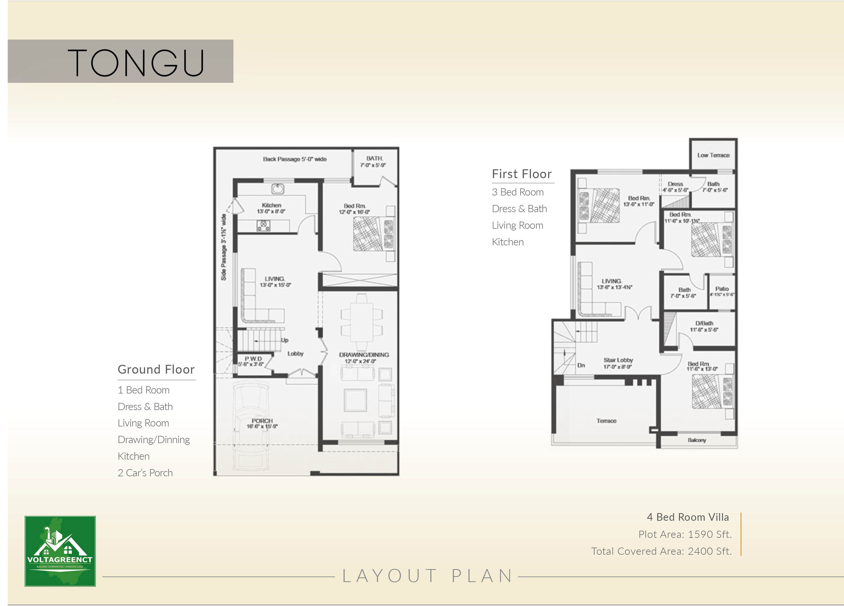 - Total Covered Area: 2400 Sft